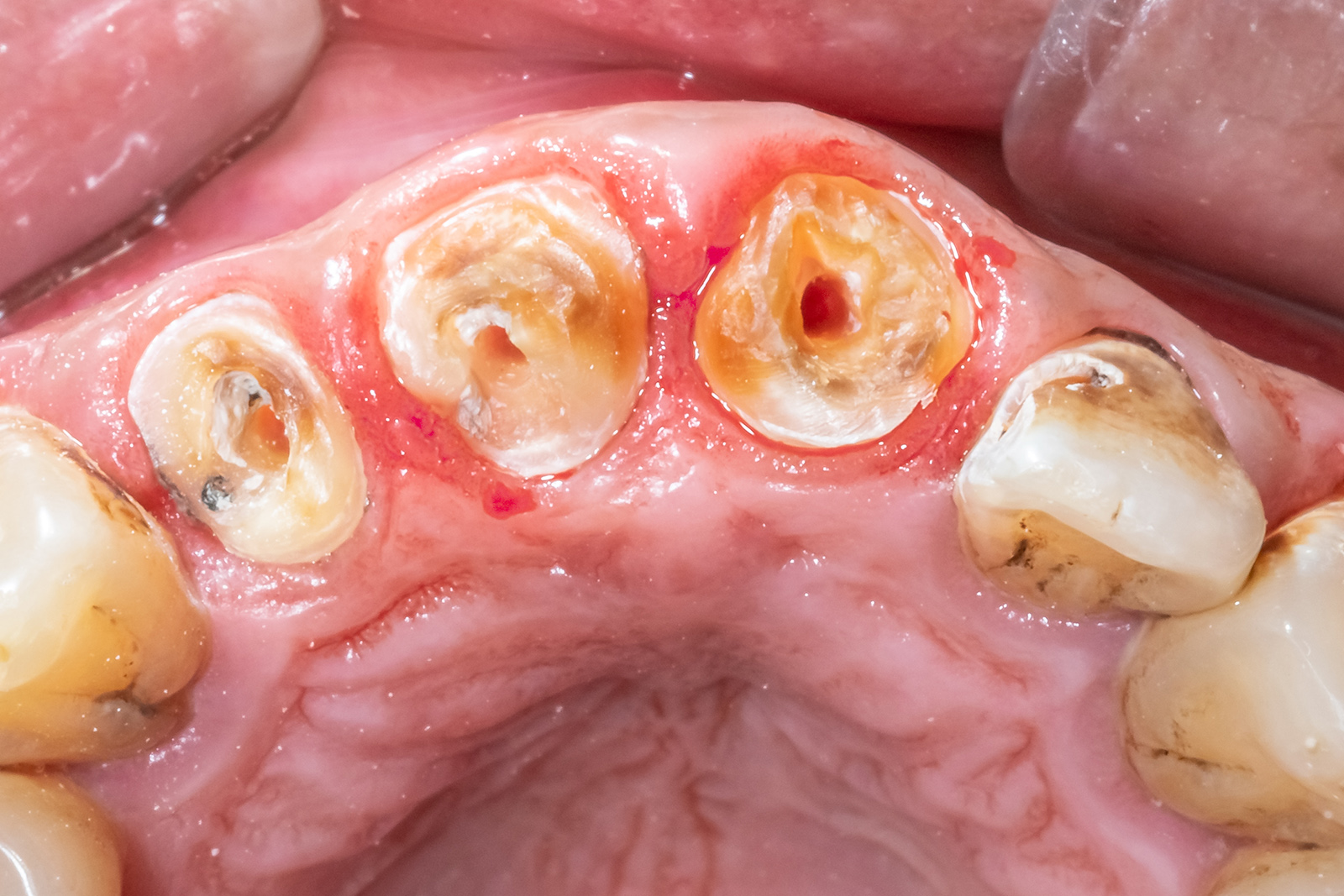 虫歯が深刻な段階まで進むと、被せ物を支えるための「歯の頭」の部分が失われてしまいます。土台を立てる場所がなくなると、一般的には「抜歯してインプラントや入れ歯にする」という選択肢が提示されることがほとんどです。