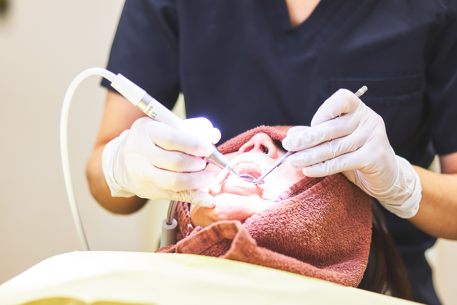 GBTでは、バイオフィルムを可視化して除去した後、歯石などの硬い沈着物を精密に取り除いていきます。